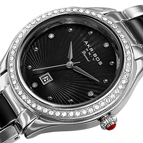 Akribos XXIV Women's Quartz Diamond Oyster Shell Pattern Silver-Tone Bracelet Watch - AK977SSBK