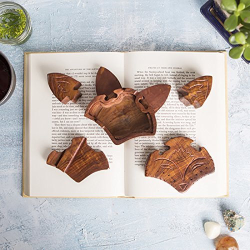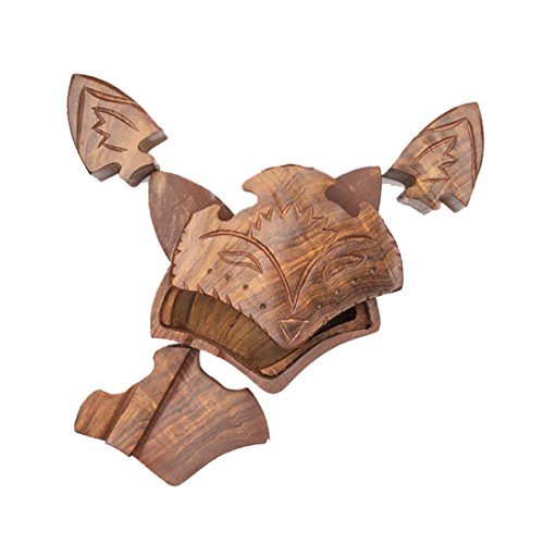Product Description A hand-carved fox shaped puzzle box adds a little whimsy to any room while storing small objects inside. Carved by hand out of sustainable Indian Rosewood. 0