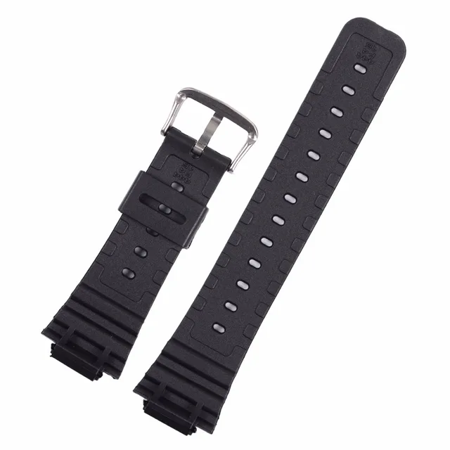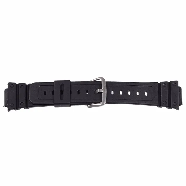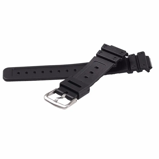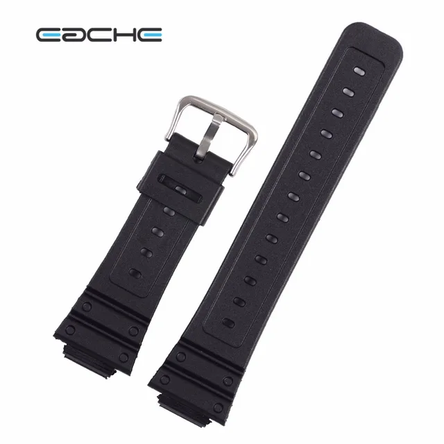 | [해외]Eache 블랙 16 미리메터 교체 시계 밴드 맞는 g 충격 실리콘 고무 시계 스트랩 방수 손목 실버 버클 |