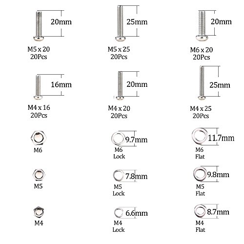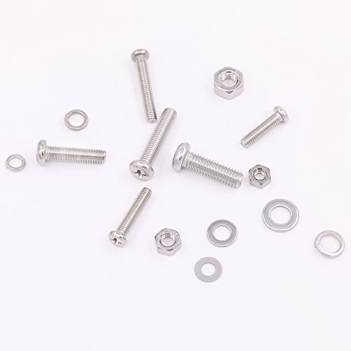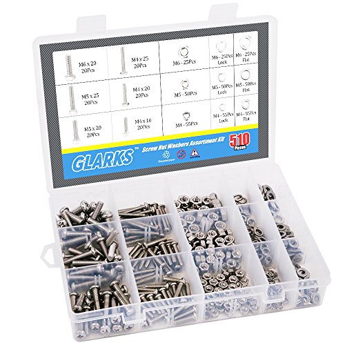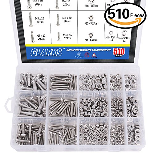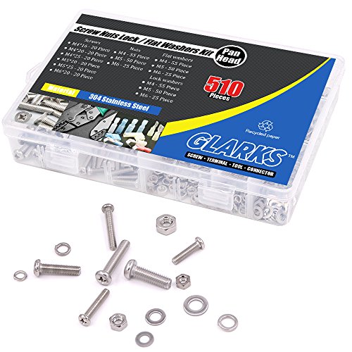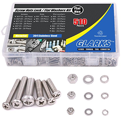 Glarks 510 Pieces Pan Head Stainless Steel Screws Nuts Lock and Flat Gasket Washers Assortment Kit