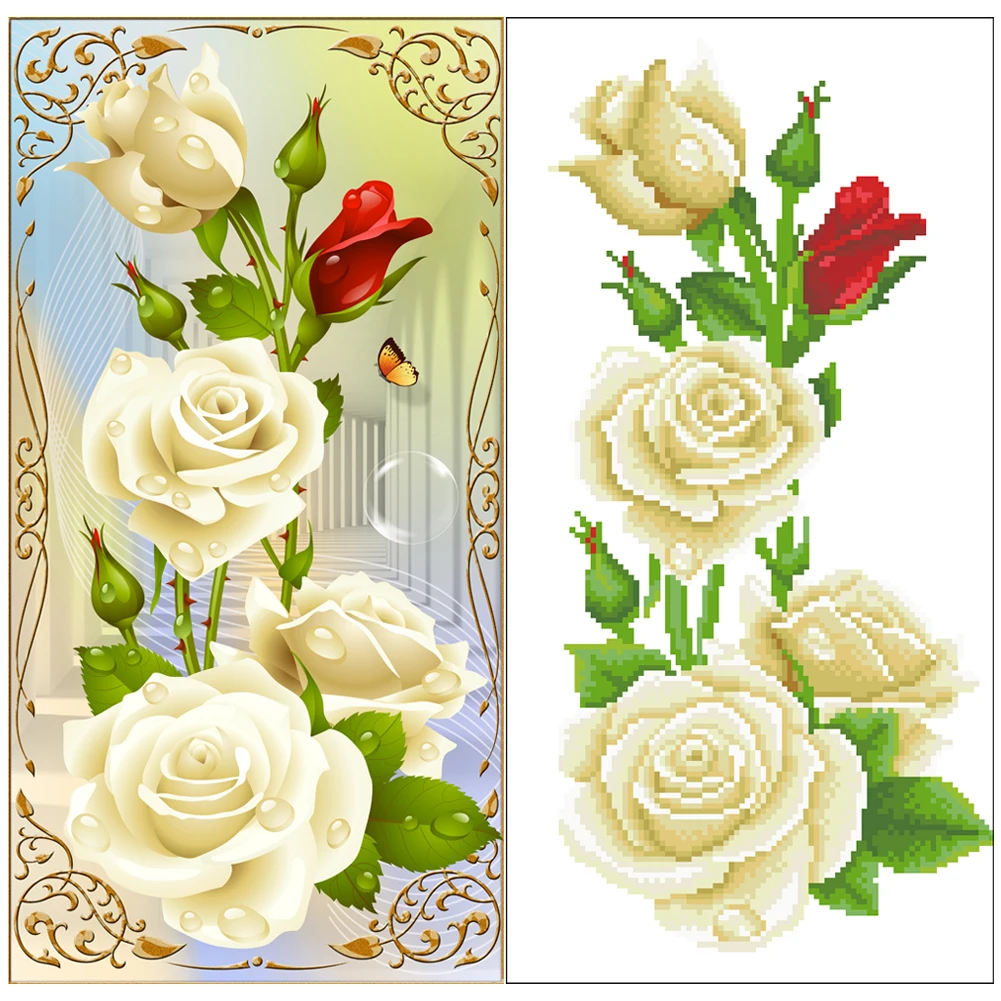 5D DIY Diamond Painting Rose Flower 3D Cross Stitch Diamond Embroidery Flores Embroidery Diamonds Wall Stickers Decor