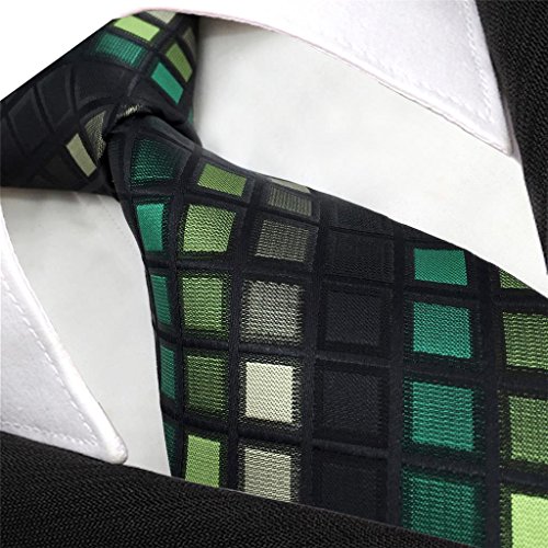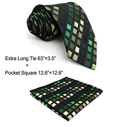 | ShlaxWing Checkered Green Neckties Mens Ties Fashion Suit For Men XL 57.5" 63" Long |