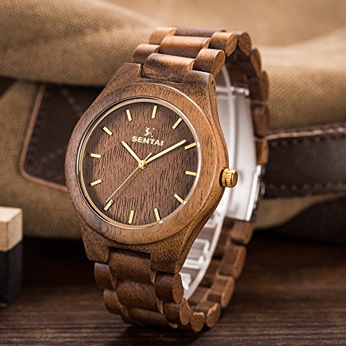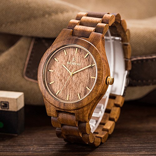 -. Title : Men's Wooden Watch, Sentai Handmade Vintage Quartz Watches, Natural Wooden Wrist Watch