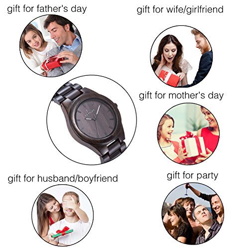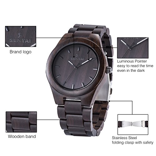 -. Feature : Handmade Natural Wooden Watch: Sentai men's wrist watch are special designed for people with allergies and sensitive skin, Non-toxic Hypo-allergenic. Handmade, maybe the natural colors of them are slightly different from each other and color difference. / Special Design: Luminous pointer, you can read the time even in the dark. Concise design, very cool but also convenient and practical in your daily life. / Imported Japanese Quartz Movement: Quartz movement operates on a battery power source, which offers long-lasting use for up to 2 years. Japanese 2035 Miyota quartz movement, energy saving, ultra-quiet, which guarantee's accurate readings every time. / Adjustable Band & Folding Clasp: You can easy to resize the watchband to fit your wrist. Folding Clasp very convenient to take on and off, with pressing buckle, it can effectively prevent falling down accidentally. If you want to change the size of the band,you can use a tool to take off the button and resize it as you want. Try NOT to get wet or soak in the water in daily life. / Excellent Gift Box: Carefully prepared, packaged and delivered to you in our bright gift box, Sentai wooden watch is a great gift choice to your loved ones for Christmas, birthday, anniversary, Father's Day, graduation or Valentine's Day.