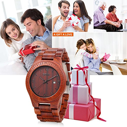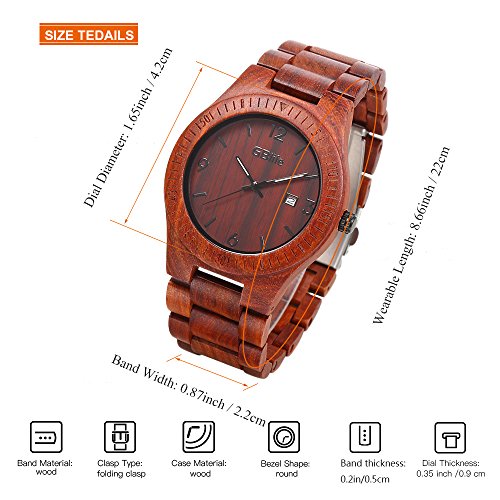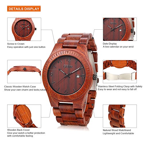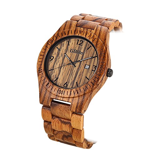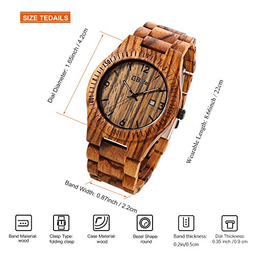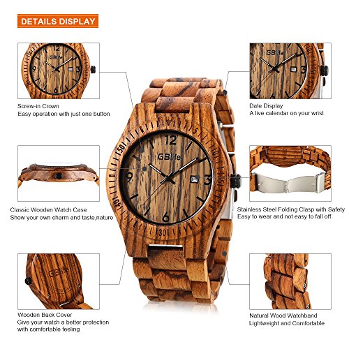 -. Title : GBlife Mens Wooden Watch with Calendar Wood Surface Dial Natural Handmade Quartz Wrist Watch #GM86
