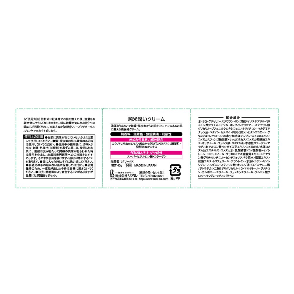 Cream 43g pure rice bran beauty jun high coercivity