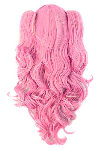 MapofBeauty Multi-color Lolita Long Curly Clip on Ponytails Cosplay Wig (Pink/ Blonde)