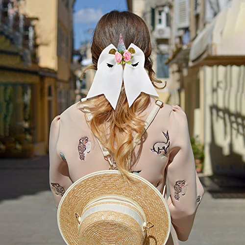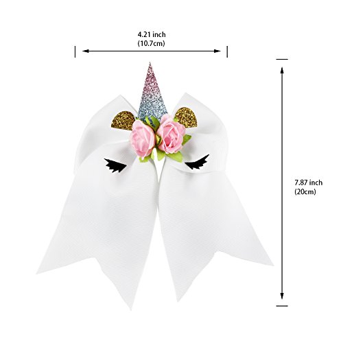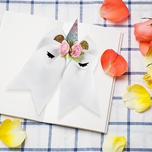 8In Unicorn Bow, Aiernuo Handmade Unicorn Hair Bows with Clips Women Girls Hair Accessories for Valentine New Year Festivals Birthday Gifts (White)