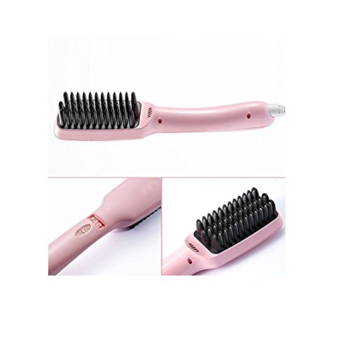 3 in 1 Function: Ceramic Iron Straightener + Detangling Brush + Anion Hair Massager. ANTI SCALD TEETH design:worry free from burning your fingers and hands,it's easy to use at home,makes hair more natural and silkier than traditional straighteners. Faster Styling: This straightener brush is designed to reach an ideal temperature in seconds. After it's heated, it only takes a few minutes if not seconds to straighten your hair, depending on your preference of hair straightening Built-in Ionizer: Anion density up to 6000000 pcs/cm3. Negative ions can neutralize the positive charge to reduce the static frizz static electricity, bifurcation and tie. Reproduce smooth shine charming hair Five temp rate setting with LCD display-From 302°F to 446°F, set your desired temperature and monitor via the built-in LED screen.To switch temperature display between celcius and fahrenheit, please hold down ionic and power button at the same time for three seconds.Feature