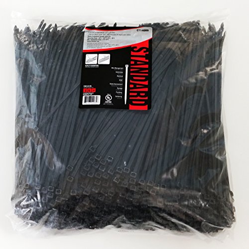 Cambridge Zipits 1000 pcs- 11" 75 Lbs Tensile Strength, Standard Duty Nylon Cable Ties, UV Black