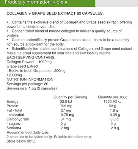 - Feature : Important Notice! In order to feedback the old and new customers of our FXQ AMAZON store, every order you make from today can get one piece Chinese Knot from as a gift. Color is random delivery. Tks for your focus and buying. Tks for your understanding. / Contains the exclusive blend of Collagen and Grape seed extract, offering powerful nutrients in your diet. / Concentrated blend of marine collagen to deliver a quality source of protein. / Contains scientifically proven Grape seed extract, know to be a naturally rich source antioxidant for the body. / Scientifically formulated combinations of Collagen and Grape seed extract make it a great supplement for your hair and skin beauty regime.