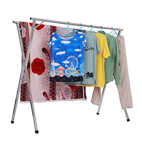 Studio : Genenic Publisher : Genenic Binding : Kitchen Product Description Waterproof epoxy coating helps eliminate rust and mildew. Good stability and load-bearing capacity, long service life. It is easy to open or close and it is the perfect solution to organize your clothes. There is no need to leave clothes on a messy of bed anymore. Free installation foldable and save space. Perfect for indoor drying your laundry, perfect for heavy items. A full-featured choice, this drying rack has hanging space, a sweater shelf, and shoe rack. Quilts, clothes and shoes can be drying. Specifications: SIZE: 59Lx28Wx53H(in inches) Weight: 3300g Material: Stainless Steel Package Includes: Product itself Instructions 0