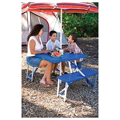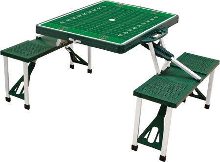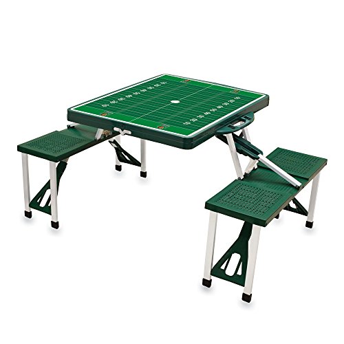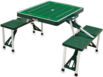 Studio : Picnic Time Publisher : Picnic Time Product Description Color:Hunter Green, Decoration:Sports Folding Table with Seats Compact fold-out table with bench seats for four, itcan take anywhere It folds into an easy-to-transport suitcase-size when collapsed and has a maximum weight capacity of 250 lbs per seat, 20 lbs for the table Constructed of red ABS plastic, it has an aluminum alloy frame for durability. The folding table with seats sport is ideal for outdoor or indoor use, wheneverneed an extra table and seats 0