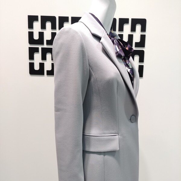 여성스러운 라인이 슬림하게 들어가 여성스러운 실루엣을 강조하고 그레이빛이 도는 블루로 고급 스럽게 입기 좋습니다 모던한 테일러드 카라 디자인에 숄더 라인이 과하지 않아 깔끔한 핏으로 입기 좋습니다 심플한 원 버튼 입니다 ★33 인치 기장 입니다 ★