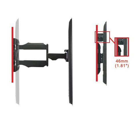 - Feature : Compatible TV Mounting Holes: 100mm x 100mm to 200mm x 200mm (3.9" x 3.9" to 7.9" x 7.9") See description for more details / Unprecedented ultra slim wall distance 46mm/1.8 inches maximum arm extension 500mm/19.7" / Built to the highest specification CE certified product 88lbs/40kg maximum TV load capacity / Tool free tilting action technology +10° tilt down and -2° tilt up & 180° rotation adjustment / Can be used with wider VESA adapter plates (NOT INCLUDED). Maximum VESA: 400 x 600mm