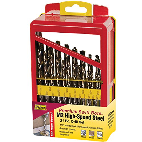 IVY Classic 10493 21-Piece M2 High Speed Steel Drill Bit Set, 118-Degree Point, Reduced Shank, Sturdy Metal Case