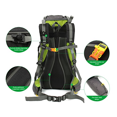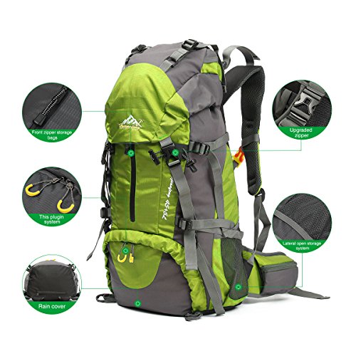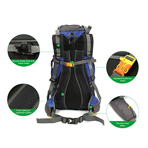 -. Feature : ERGONOMISCH -- Ergonomisch gestaltete Rucksack, versammelten sich eine bequeme Offloading-Riemen. Verwendung des Federgabelpumpe Gasentlüftungssystem und passendere Wirbelsäule Kurve zurück. / HOCH KAPAZITÄTEN -- 50 Liter Professionelle Erwachsene Trekkingrucksack. Das Hauptfach Dichtung nehmen Pull-Modus, versenkbare Tasche die Elemente in der Größe zu setzen. / WASSERDICHT -- Es aus Hohe verschleißfest , reißfest , wasserbeständige Nylon-Material Mit Regenabdeckung. Alle Aspekte wasserdicht und schützt die ganze Rucksack von Regen. / GESCHMEIDIG UND COMFY -- Das Gesamtgewicht beläuft sich auf nur 1 KG und hat einer verstellbarer Schultergurt. Stellen Sie sicher, dass die Rücktrocknung und Komfort. So kann man es praktisch tragbar mitnehmen. / BENUTZERFREUNDLICHES DESIGN -- Seitentaschen , Gürtel, Schnallen und andere Benutzerfreundliches Umfassendes Design , bauen speziell für Backpacker. Besonders geeignet für Reisen, Camping, Bergsteigen, Wandern usw.