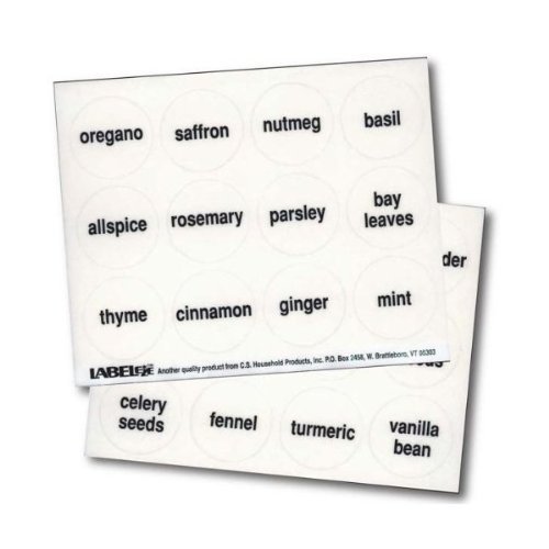 Round Spice Labels, Black Type on Clear, Set of 48