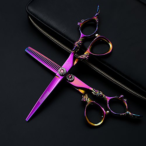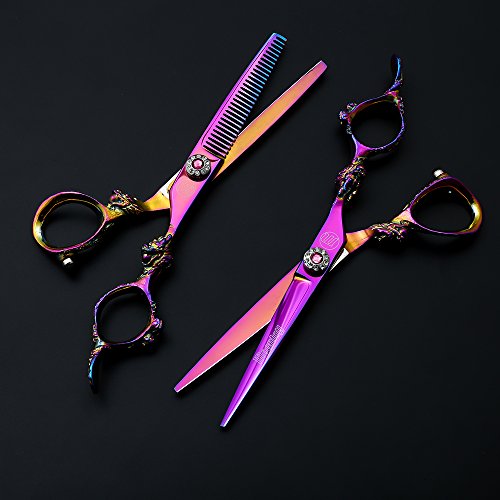 6.0'' Professional Rainbow Dragon Handle Barber Scissors High End Japanese 440C Steel Hair Cutting Scissor and Salon Thinning/Texturizing Shears Sets with...