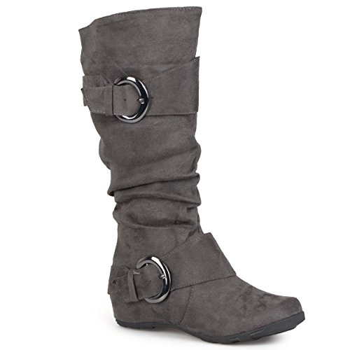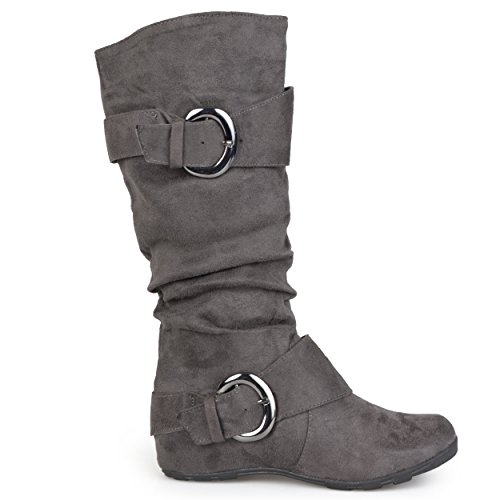 Product DescriptionStep into trend-setting style with flat buckle boots by brinley co. these must-have tall boots feature smooth faux suede uppers with a subtle slouchy style that rise mid-calf.0