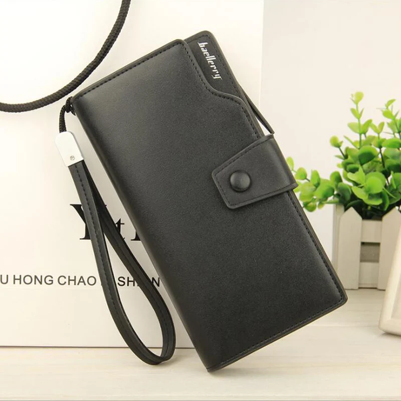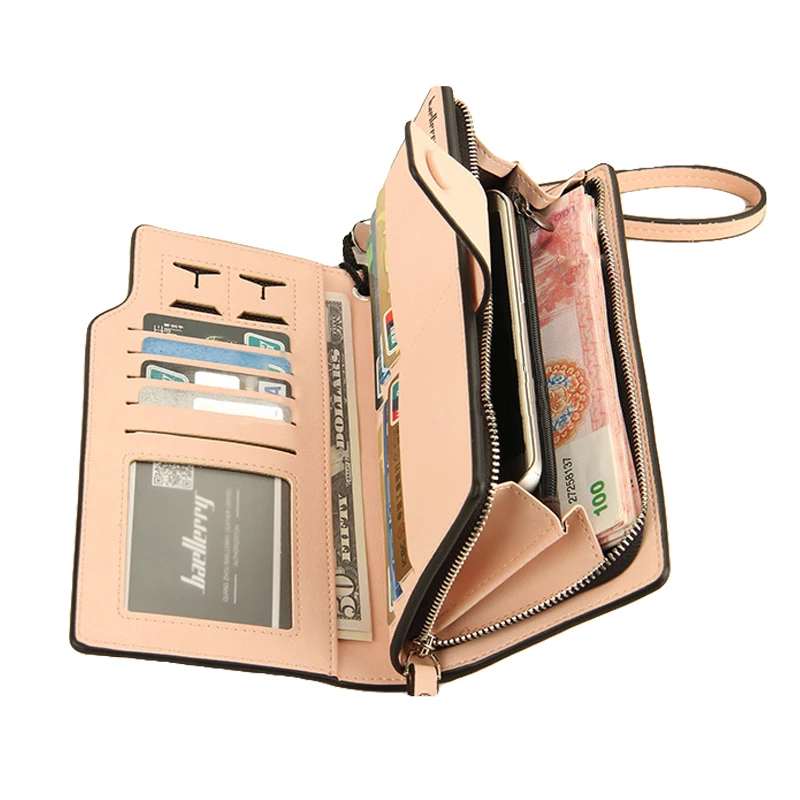 Large clutch female:leather wallet women with wristlet strip