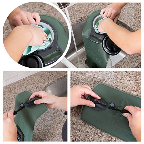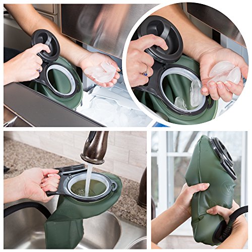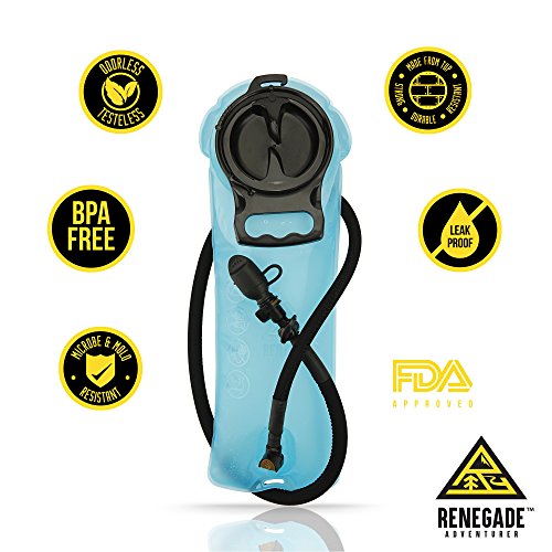 -. Feature : LEAK PROOF CONSTRUCTION SO YOU CAN HIT THE DIRT IN CONFIDENCE: We've incorporated the best materials and manufacturing methods to prevent leaks, no matter how rough the ride. The 2 liter (70oz) hydration system includes a non-leak bag with durable seams, secure screw cap and hose connections, and mouthpiece with on/off valve switch / HEALTHY HYDRATION THAT WON'T MAKE YOU GAG: Made from FDA approved, non-toxic, tasteless TPU material that won't leave a nasty plastic odor or taste in your drink. The antibacterial interior prevents microbial buildup. Quench your thirst with clean, uncontaminated water without that oh so familiar stale taste. We'll drink to that! / UNIVERSAL DESIGN TO FIT ALL BACKPACKS: We may be renegades on the trail but we play nicely with other brands! This 2 L water bladder fits into almost every water pack on the market so that you can throw it in your pack and head out on your next adventure. Ideal for running, cycling, hiking, biking, racing, climbing and more / DOESN'T SUCK TO SUCK: When you're sucking wind on a climb you need to get the water flowing without killing your stamina. The fast-flow bite-valve delivers cool water from the insulated tube effortlessly. The protective mouthpiece keeps dust and debris out. Never come home again dehydrated and with a half-filled bladder because sucking was more rigorous than your ride! / EASY AND QUICK TO CLEAN: Let's face it. Hydration bladders can get nasty. That's why our accessories are designed for easy washing. Extra wide screw top and detachable tube with quick release mechanism makes inner surface easily accessible. Large opening also makes re-filling with water and ice cubes a breeze