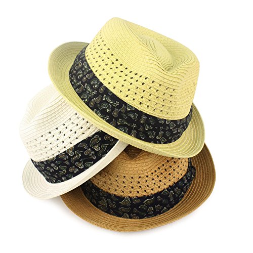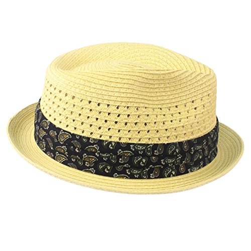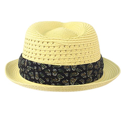 -. Title : Men's Summer Stingy Short Brim Derby Fedora Paisley Hatband Hat Natural S/M 56cm