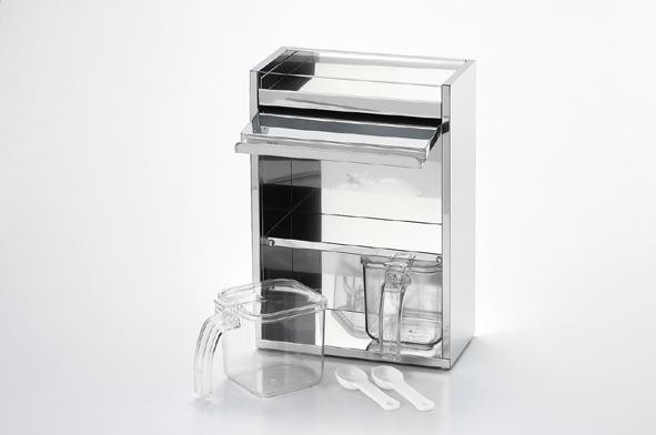 | 素材・材質 | 本体:ステンレス鋼(クロム21%) ストッカー:アクリル樹脂 スプーン:ポリプロピレン |