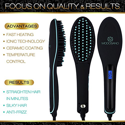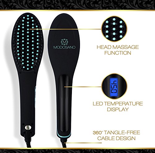 Premium Hair Straightener Brush by Modosano Ceramic Hot Brush for Straightening Hair - Far Infrared Technology - Ionic Brush w/ Temperature Control + Auto...