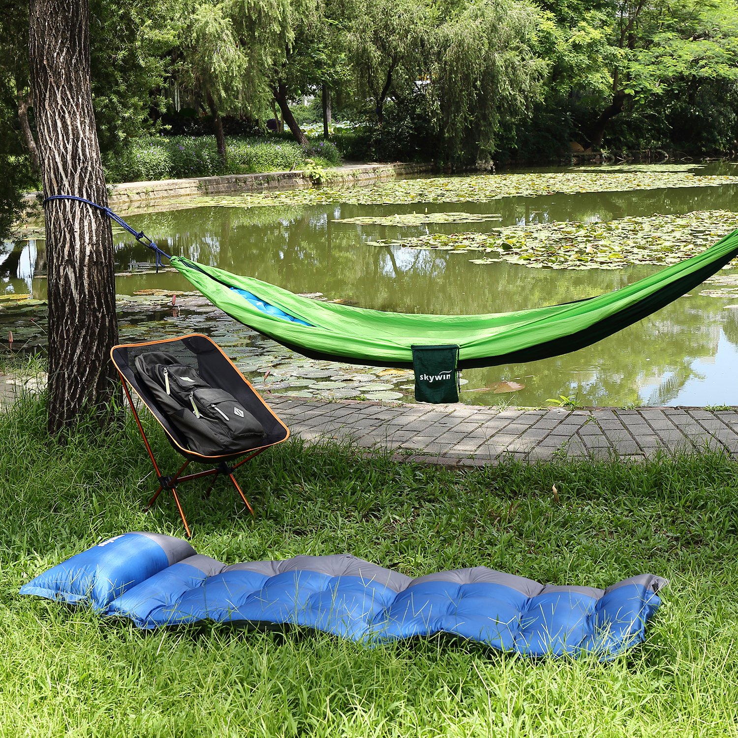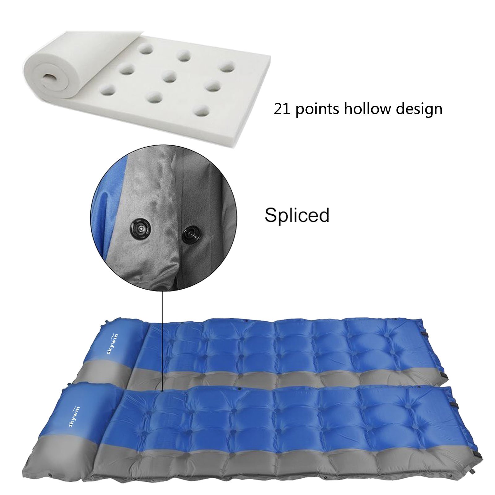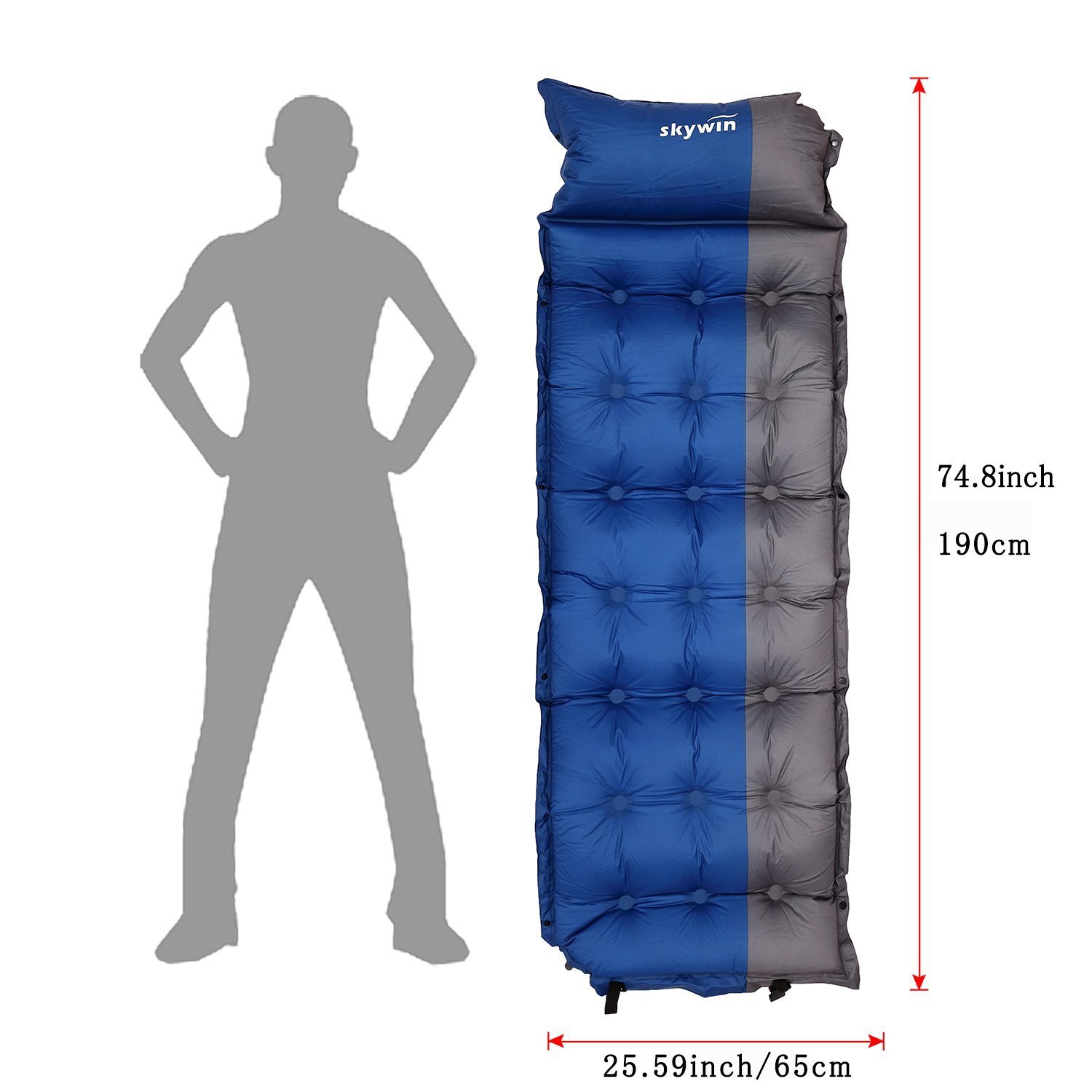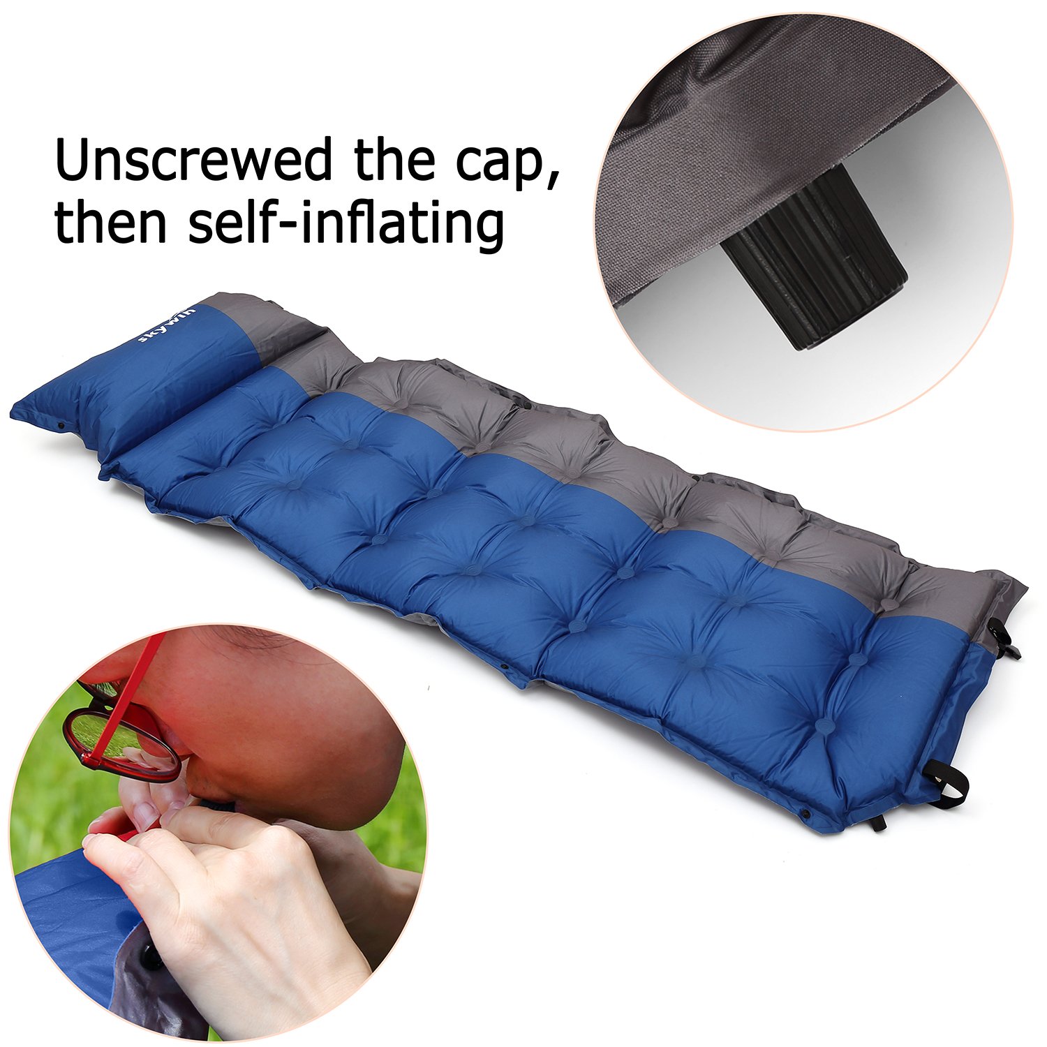 SKYWIN mat for camping Self-inflating sleeping pad with inflatable pillow.