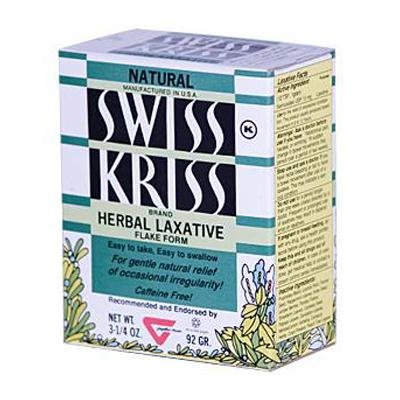 Studio : Modern Products Publisher : Modern Products Binding : Misc. Product Description Go natural with Modern Products Swiss Kriss Lax (1x3.25 OZ). For Gentle Natural Relief of Constipation Swiss Kriss (Senna) (Cassia Angustifolia) is used as a powerful cathartic in the treatment of constipation. These Swiss Kriss herbal laxative flakes are naturally different. Known world-wide as the smoothest most satisfying laxative Swiss Kriss flakes are 100 natural contain no harsh synthetic drugs effective ingredients consist entirely of Nature's Own sun-dried leaves herbs and flowers. Swiss Kriss contains a blend of herbs and flowers that work in harmony with the body to relieve chronic or sporadic constipation and promote regularity without the side effects of synthetic laxatives.. (Note: Description is informational only. Please read the ingredient label on the product for more information and always consult your health professional with any questions prior to use.) 0