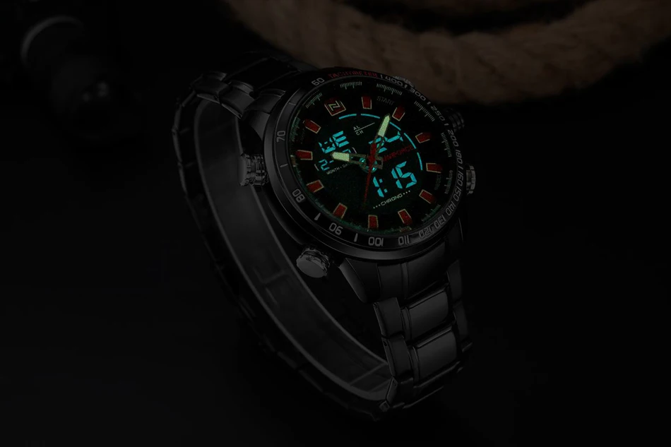 Feature:Water Resistant,Multiple Time Zone,Stop Watch,Complete Calendar,Back Light,Alarm,Luminous Hands