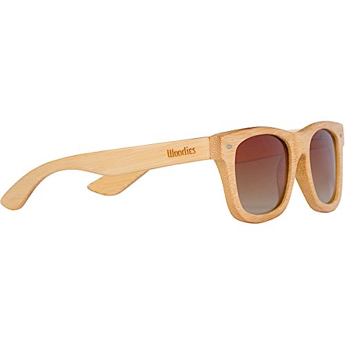 Woodies Full Bamboo Wood Sunglasses are handmade from 100% natural bamboo. The lightweight bamboo wood offers a comfortable fit that is durable and sturdy at the same time and they float! Our unique stainless-steel, double-spring hinges are sturdy and designed to keep their shape year after year. The lenses are specially designed so that they are both dark and polarized, offering 100% UVA/UVB protection even in intense lighting conditions. These glasses are stylish, durable, and natural. Each pair includes a durable black carrying case, a microfiber lens cleaning cloth and a wood guitar pick! 30-Day Money back GuaranteeFeature