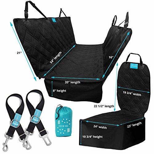 -. Feature : ALL IN 1 PACK: Fully equip your vehicle for travels with your pet and save time. This unique combination pack comes with everything you need to restrain your pet and protects your vehicle's seats as you drive. / FRONT & BACK SEAT COVERS: Comes with a hammock style backseat or rear bench protective cover and front or bucket seat cover. Both can be installed and removed in seconds, and are fully adjustable. / MULTI LAYER PROTECTION: Both car seat covers have a soft and comfortable quilted outer layer over waterproof pvc, rubber mesh and have non slip backing. Each cover comes with a bonus storage tote. / SEAT BELT LEASH: Includes 2 adjustable safety leads and restraining safety belts that clip into most car's seat belt clips, and clips on to the pet's harness or collar. Made with heavy duty nylon and zinc alloy. / PET & PEOPLE PLEASERS: At Duke & Dixie, our goal is to design premium quality supplies that make life easier and more comfy for pets and their families. Our products are packaged to make the perfect gift. 1 YEAR MONEY BACK GUARANTEE ensures your satisfaction. If you're not delighted with the durability and convenience of our seat cover protection set , return it for a 100% refund of your purchase P.R.Ice.