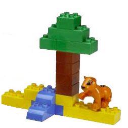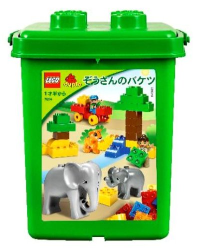 たくさんのデュプロ基本ブロックやお人形、お母さんと子どものゾウ、ライオンの子どもなどのセット。遊んだあとは楽しくお片づけができるバケツ入り。 51ピース数。