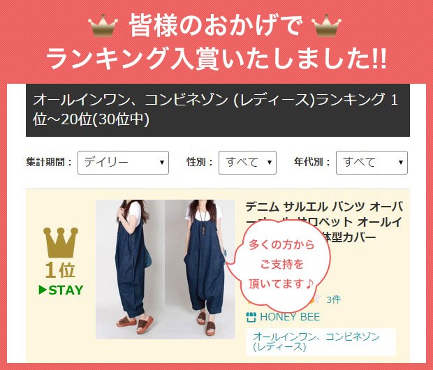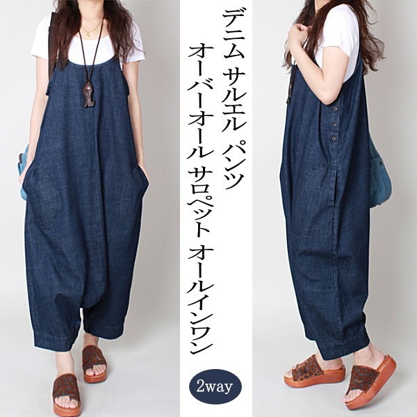 | 商品名 | デニム サルエルパンツ オーバーオール サロペット オールインワン つなぎ 体型カバー | ||