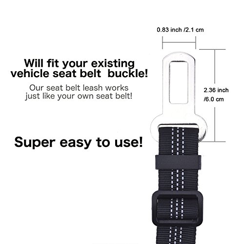 -. Feature : BUY ONE GIVE ONE: It's a little known fact to many that dog rescues are in desperate need of dog supplies. We want to help! For every product sold, we donate a pawsome product to a dog rescue in the USA. When you purchase one of our high quality seat belt leashes you are not only getting a seat belt leash that is 2x stronger than other seat belt leashes, and comes with super reflective stitching to help your pup be seen, but your also donating a product to a rescue that really needs it. / HOW WE DO IT: After every purchase a member of our team adds one of our pawsome products to one of our shipping boxes. Once that box is filled, we seal it and send it off with a great big thank you note to all the hard working people at the rescue. Feel free to put your local rescue in our sestion box on our website if you think they could use some donations and we will add them to our list! / MAXIMUM TOUGHNESS AND DURABILITY: Nearly 2X thicker and stronger than regular seat belt leashes. 2.5mm thick and 1" wide with heavy duty, high strength fabric for enhanced toughness and durability. You're both gonna love this seat belt leash. / HIGH QUALITY: Our seat belt leash is 1" wide uses 2mm thick reflective nylon and has an elastic bungee to help cushion the pull. It is also adjustable from 12"-24" for dogs of all sizes. / GREAT FOR HARNESSES: The seat belt leash is designed for use with your dog harness. It is designed to be clipped on the back side.