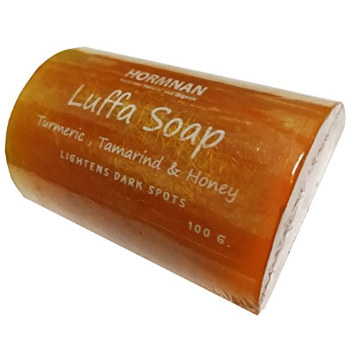 Luffa Soap Bar Scrub Clean dark spots whitening aroma natural Thai hand made Herbal Turmeric , Tamarind & Honey soap 100g