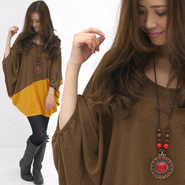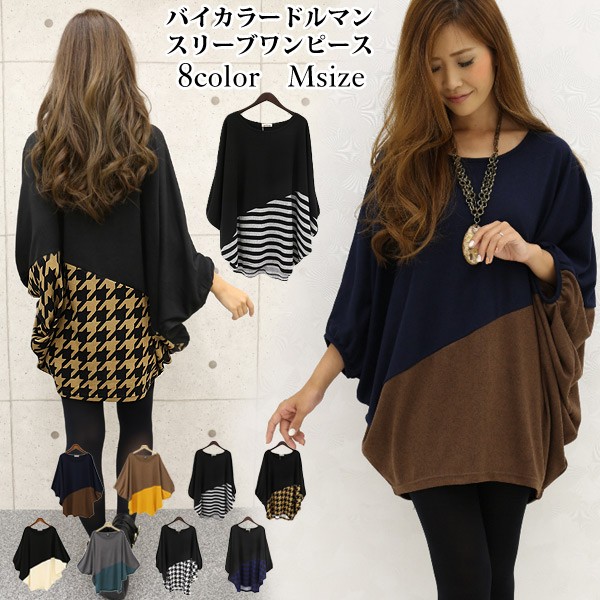 バイカラードルマンスリーブワンピース |