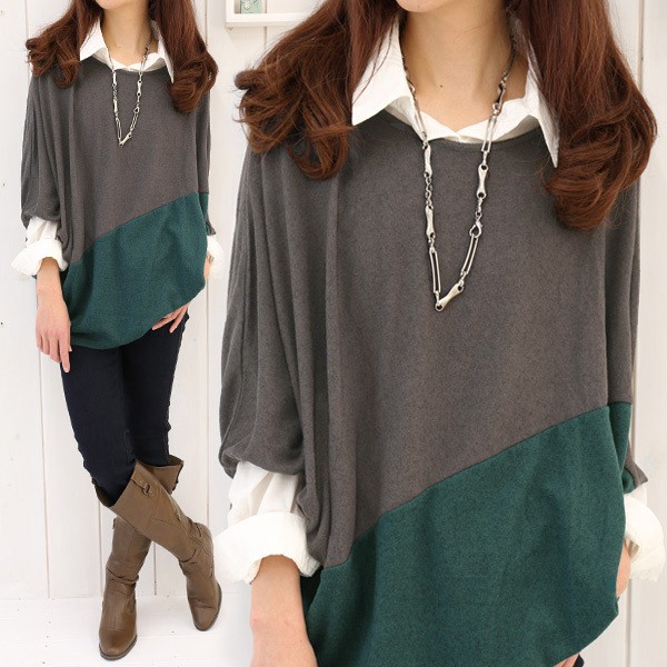 ザックリ斜めバイカラー