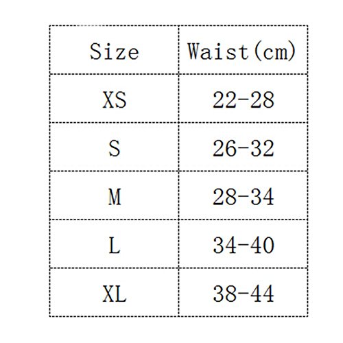 8-XS: waist circumference 22-28cm 10-S: waist circumference 26-32cm 12-M: waist circumference 28-34cm 14-L: waist circumference 34-40cm 16-XL: waist circumference 38-44cm