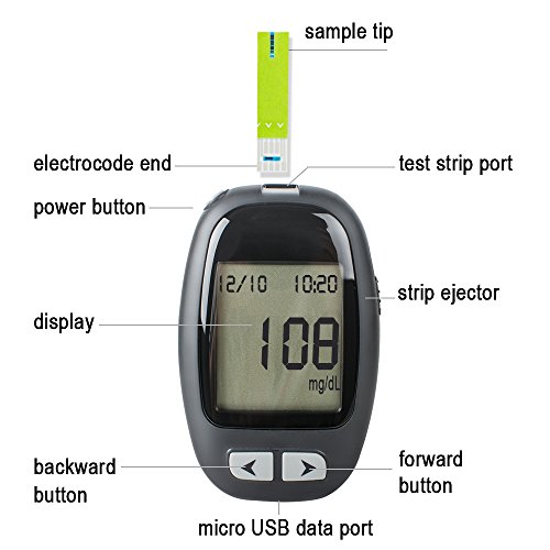 -. Feature : ✔100% Brand new and high quality. / ✔The Blood glucose is designed for easy test of blood glucose and helps you keep blood glucose under control. / ✔Easy to use ,just insert the strip , add the blood and read the result.With a logbook,for record the test result. / ✔Very Small blood sample:Only 0.5μL is required,900 test results memory storage. / ✔Get the Jinon, put your worries aside! If you don't like it for any reason, you can just take advantage of our 60 days warranty. We will replace it or give your money back for any reason.