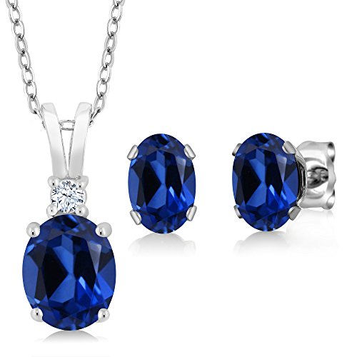 -. Title : 3.69 Ct Oval Blue Simulated Sapphire 925 Sterling Silver Pendant Earrings Set