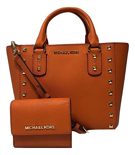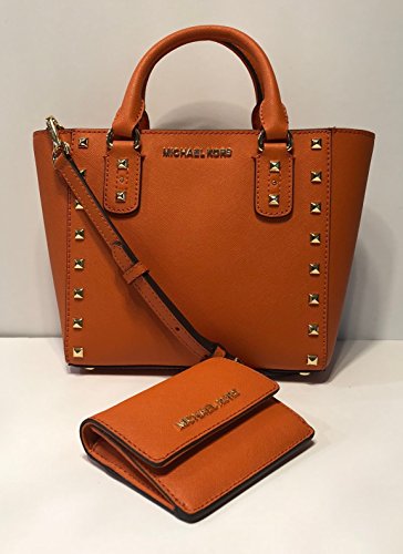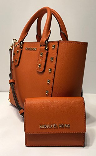 Bundle of 2 items: MICHAEL Michael Kors Sandrine Studded SM Crossbody bundled with Michael Kors Jet Set Travel Card Case ID Key Holder Wallet Tangerine
