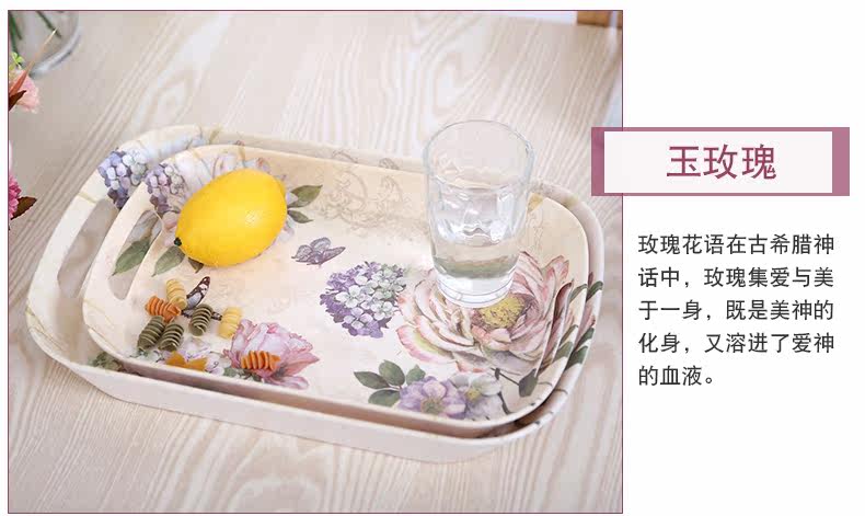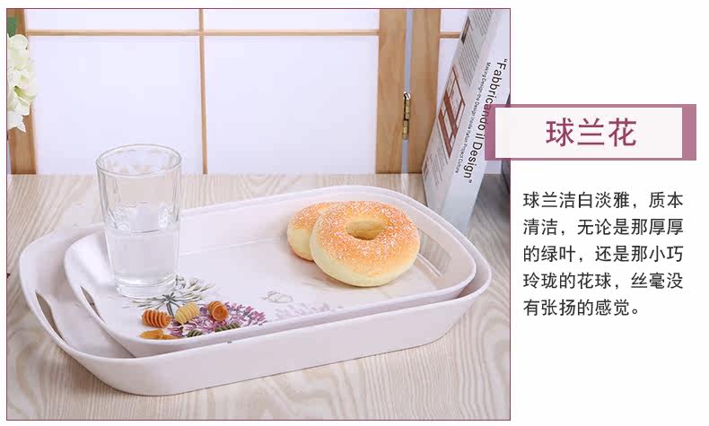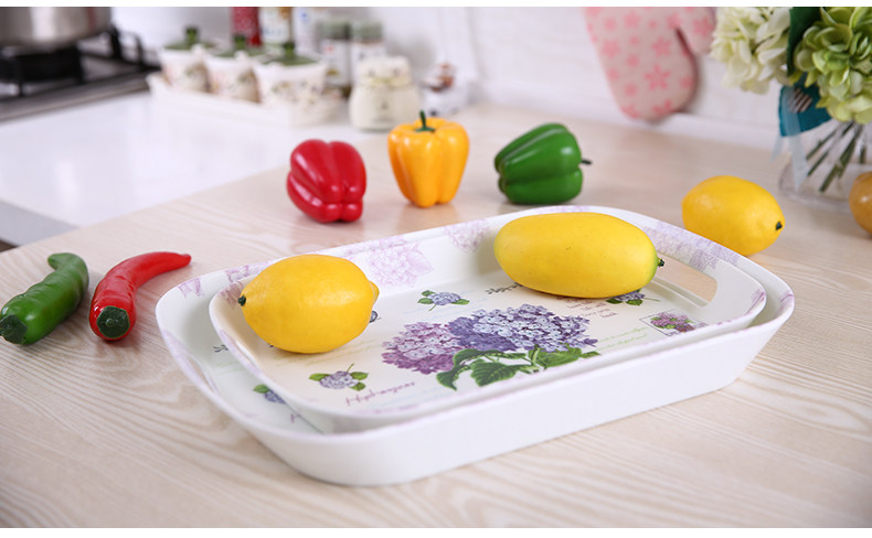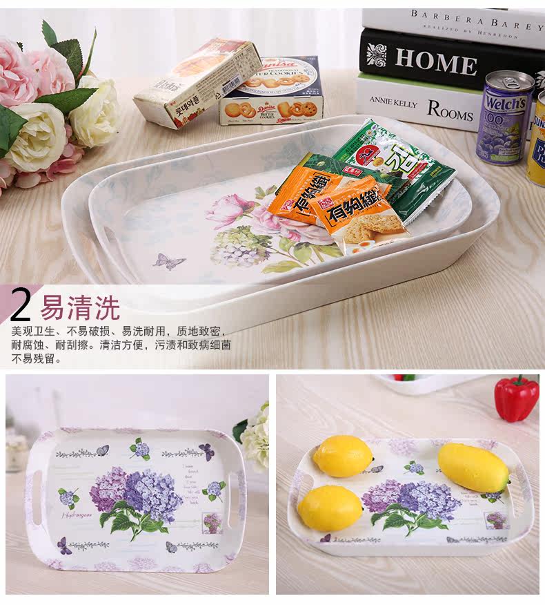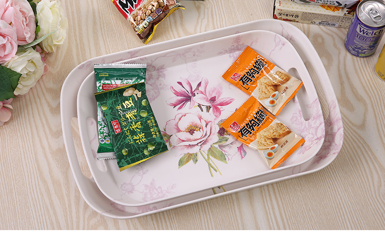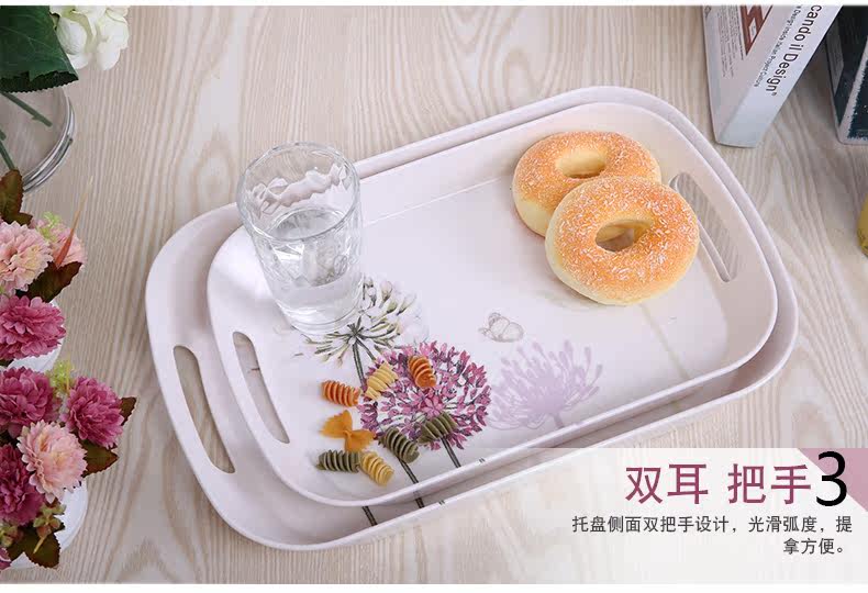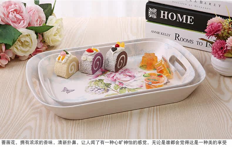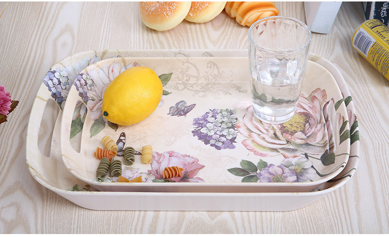 美耐皿双耳亚光托盘两件套 欧式创意杯子托盘长方形