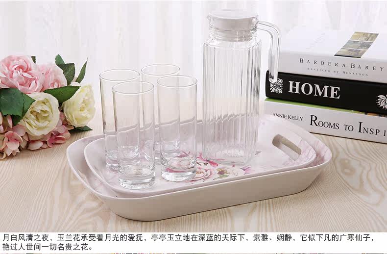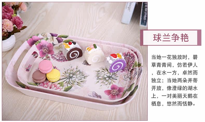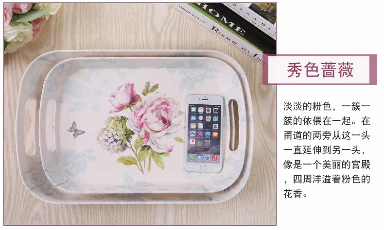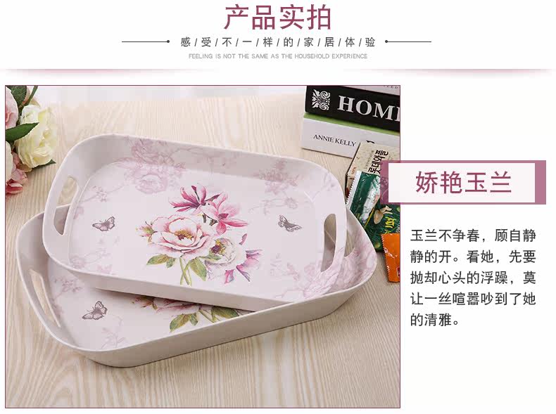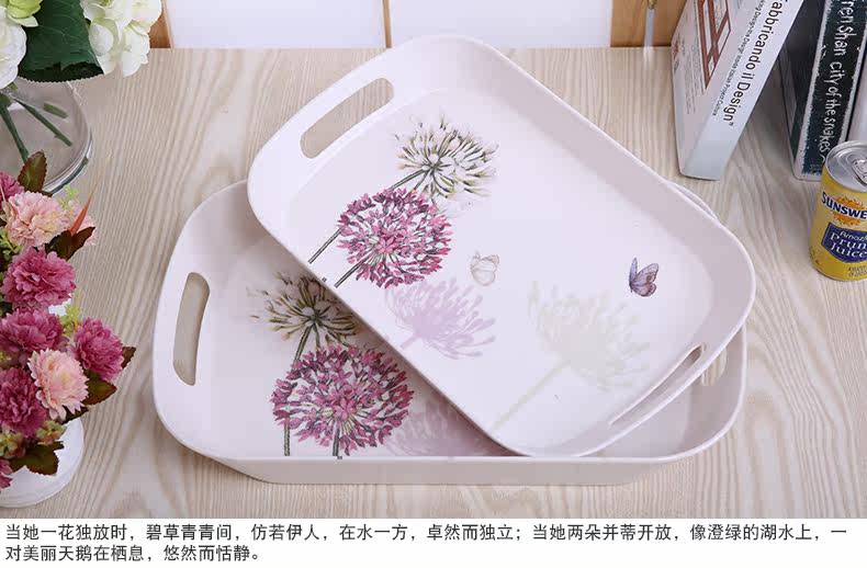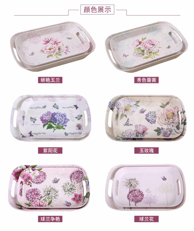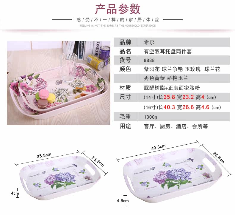 美耐皿双耳亚光托盘两件套 欧式创意杯子托盘长方形