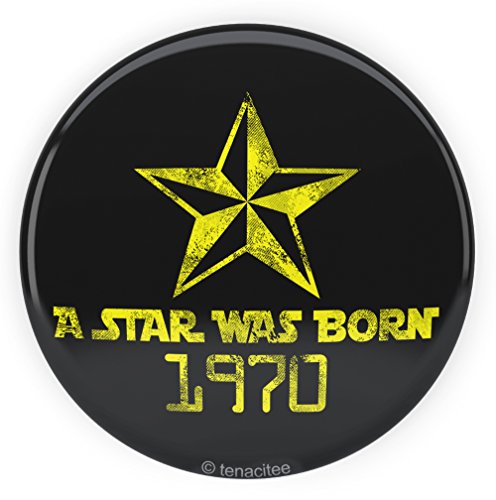 Binding : Apparel Product Description A Star Was Born 1970 2.25" Button by Tenacitee. Express yourself! Buttons are the perfect way to let the world know how you feel. Our buttons are designed, printed, and handmade at Tenacitee's studio in Oklahoma. Proudly made here in the USA! This 2.25" button has a metal shell with pinback and mylar cover to protect from scratches. Perfect to decorate your shirt, jacket, bag, or put anywhere else you want! It's a great gift or giveaway for parties. 0