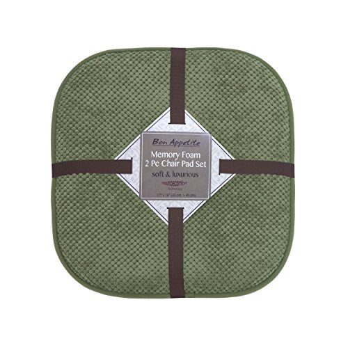 Bounce Comfort Bon Appetite Memory Foam 17 x 16 in. Cushioned Chair Pad, Set of 2 Fern Green