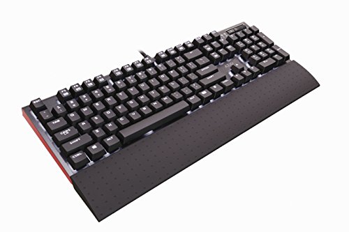 - Feature : White LED Backlight w/ Adjustable Brightness / Mechanical Key Switches (Kailh Blue) / Easy-Access shortcut Keys & Volume Wheel / Soft-Touch Detachable Palm Rest / Gunmetal Grey Anodized Aluminum Face Plate / Braided 6ft Cable / Full NKRO on USB (Windows)