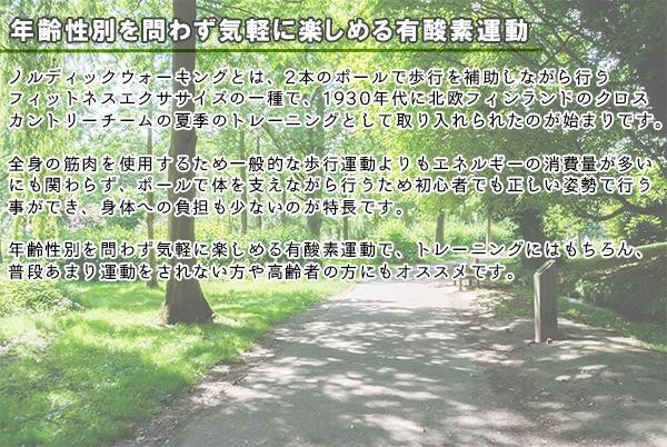 | ポールを使うことで全身の筋肉を動かす事ができる有酸素運動「ノルディックウォーキング」の専用ポールです。リハビリや運動不足の解消、全身のトレーニングなど、初心者~上級者まで幅広くお使い頂けます。シャフト素材には丈夫で軽いカーボンを採用!! |